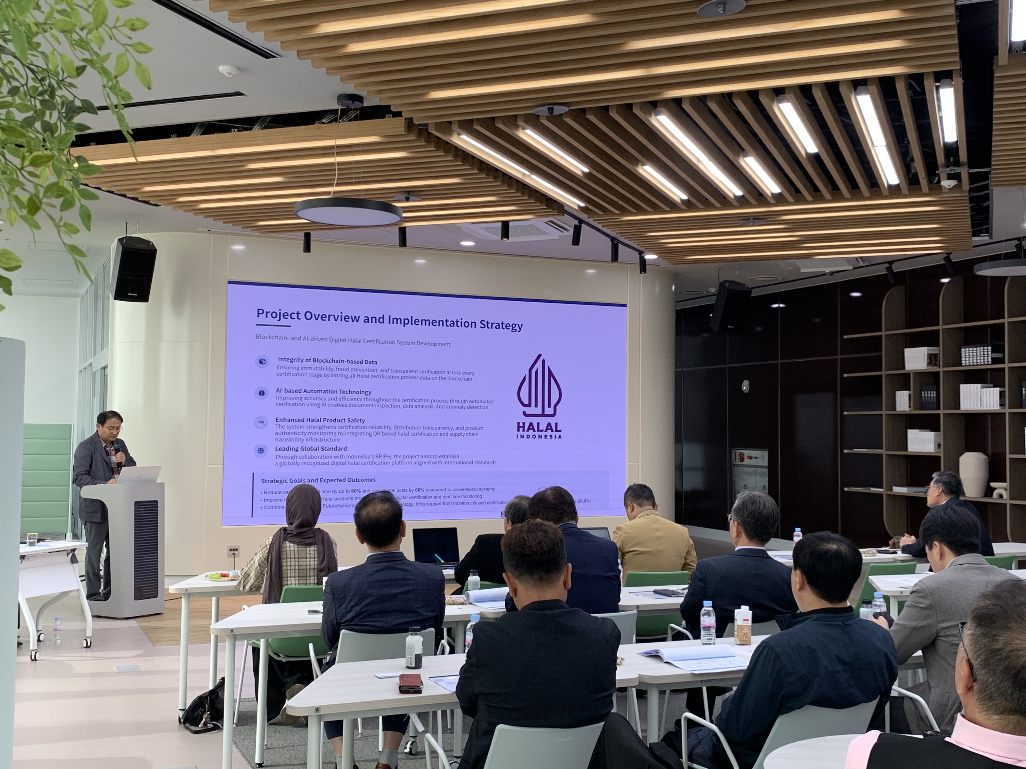 행사는 퓨처센스㈜의 ‘블록체인 기반 E-할랄 시스템’ 소개로 시작해, 할랄인증청의 인증 절차 및 제도 안내, 이슬람대학교의 할랄 심사기관(LPH) 활동 소개, 반둥공과대학교의 블록체인 기술 적용 연구 발표 등이 이어졌습니다.